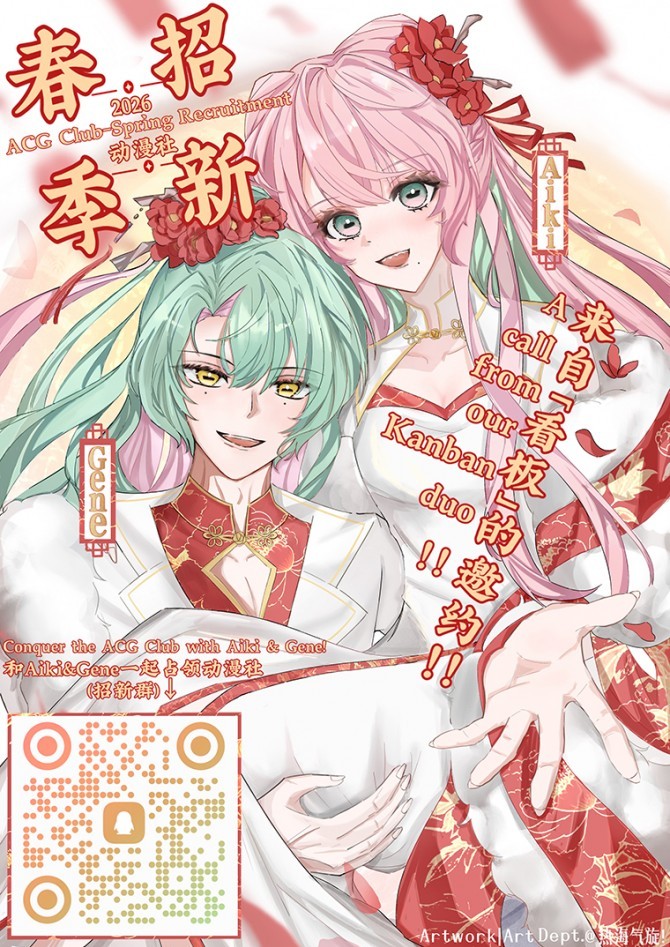 作为温州肯恩大学历史最悠久的兴趣社团之一,ACG社始终秉持“温肯ACGN亚文化爱好者的温馨小家”这一理念。我们不仅在线上交流ACG作品,还在线下举办丰富多彩的活动,如周常聚会、动画放映会等,只为热爱ACG的你提供一个自由表达兴趣的平台!此次招新希望能让更多ACG爱好者发现我们、加入我们。