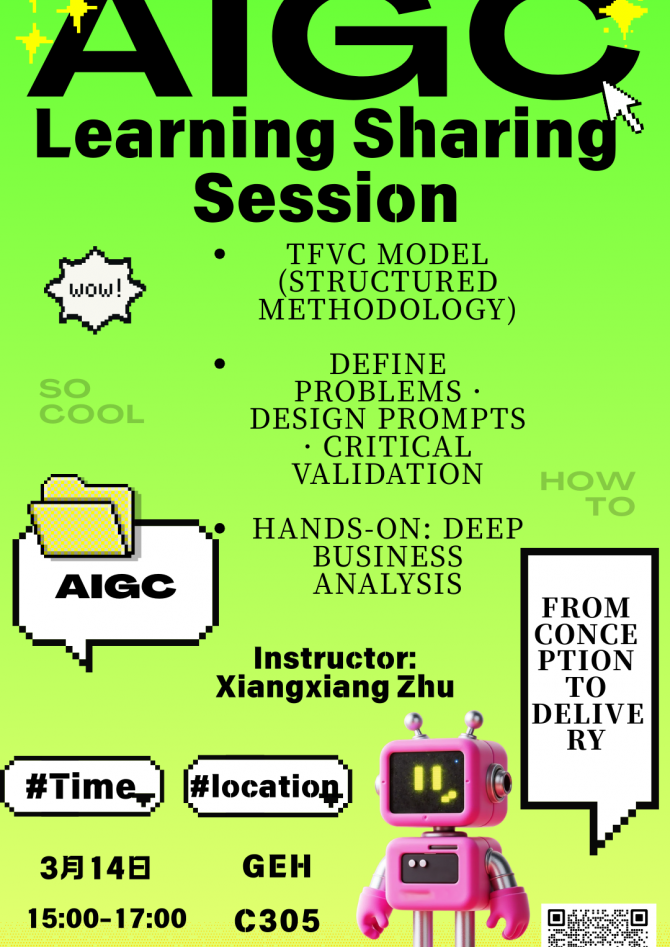 本次工作坊将从底层逻辑理解AI的工作原理,学习如何将其从“答案机器”转变为“思考伙伴”。通过严格的、可验证的结构化方法论(如TFVC模型),参与者将掌握如何定义问题、设计Prompt、批判性验证输出,并最终完成一份深度商业分析,实现人主导判断,AI辅助洞察的协作模式。
